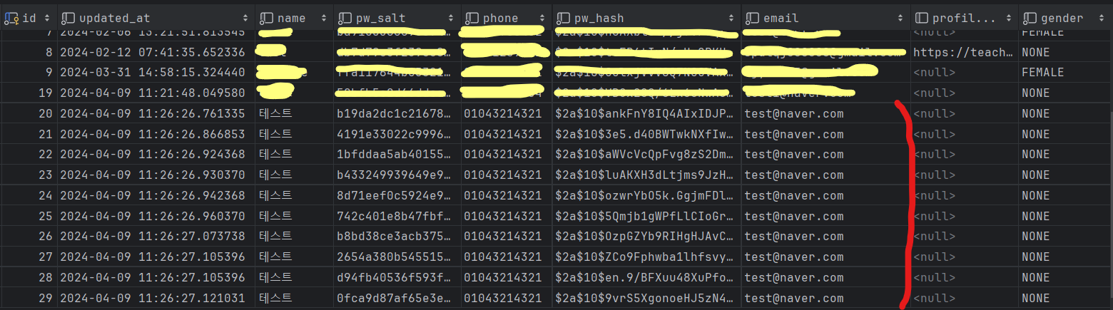 10개의 중복 계정이 생성되었다..!