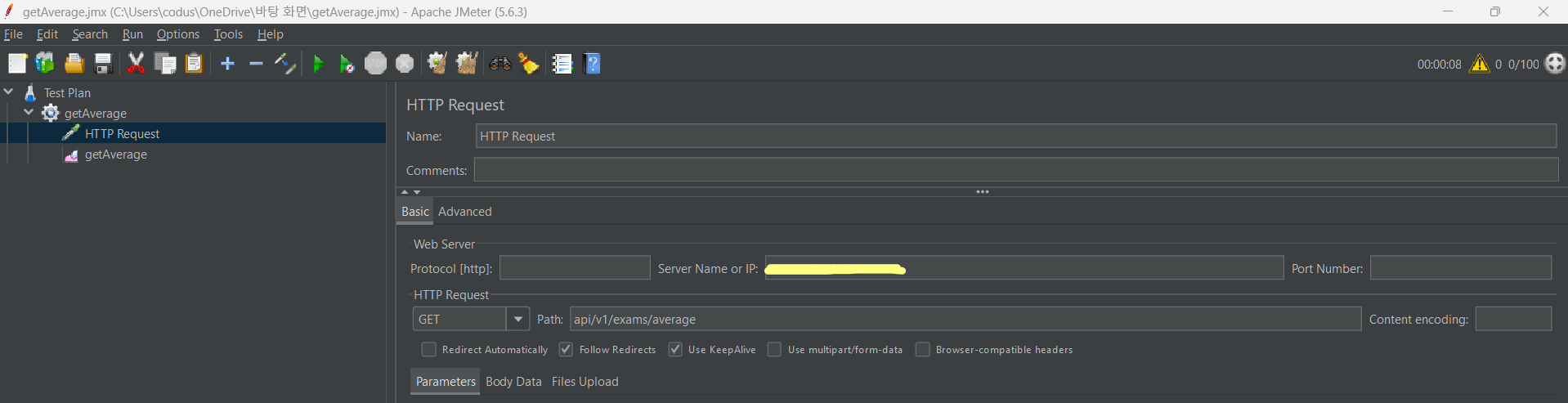 그리고 회원가입 API 부하 테스트를 맨 처음 동일한 조건으로 100개의 스레드를 두 번 호출해주면..!
