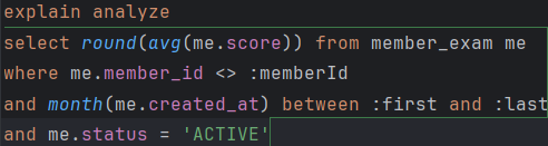 2번에 이어서 진행하면, 기존 쿼리에서 month(me.created_at) between :first and :last 조건으로 날짜별 시험 분기처리를 진행한다.