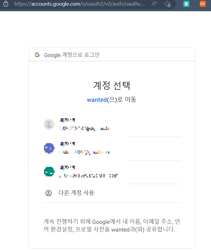 프로필을 선택하고 나면 이전에 남은 로그인 처리를 진행할 redirect_uri로 지정했던 url로 리다이렉트된다.