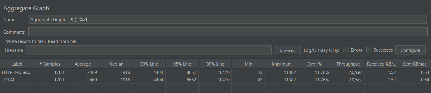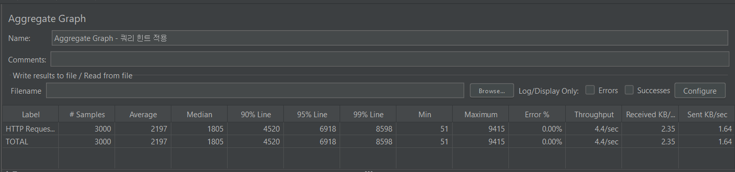 CPU Cycle을 적게 소모할 수 있기에, 쿼리문을 수정하고 다시 부하 테스트를 진행했다.