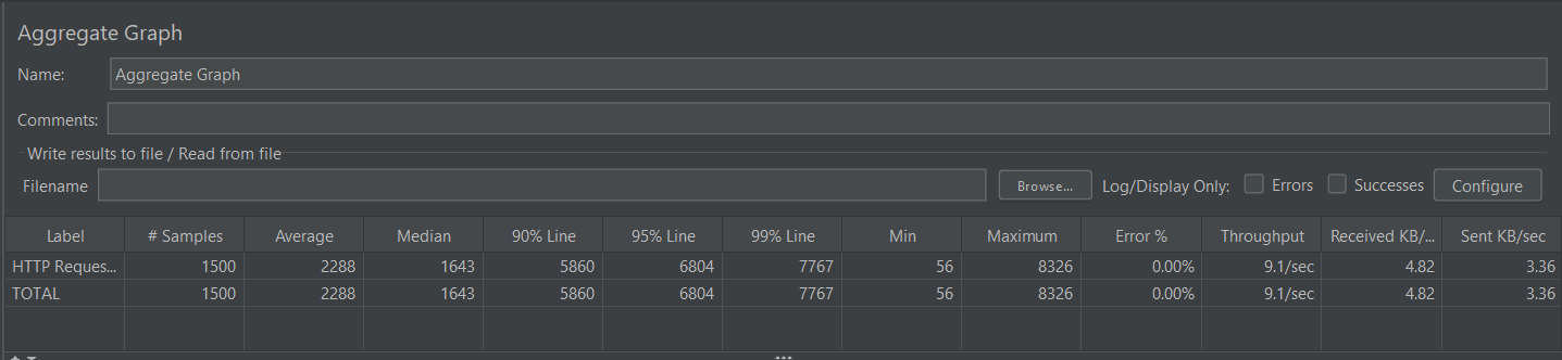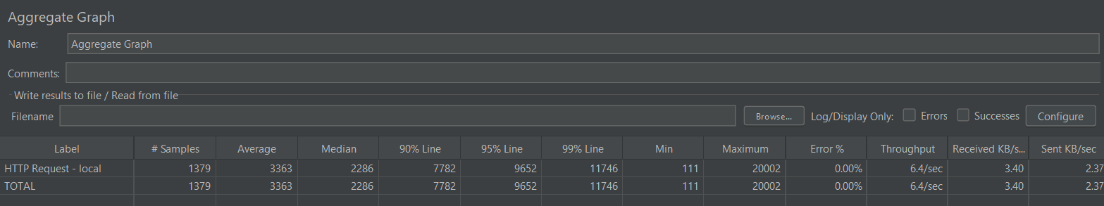 부하를 일으킬 HTTP Request를 작성해주고 테스트해본 결과 평균 3363ms이 소요된다.