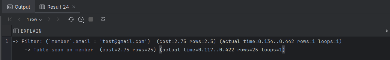 그렇기에 부정 조건을 대체하고 left outer join을 통해 인덱스를 추가하여, 새로 추가된 memberId 컬럼이 null인 경우만 조회하는 쿼리로 변경해보았다.