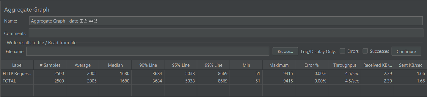 Jmeter로 성능 부하 테스트를 한 결과, 3485ms가 소요되었다.