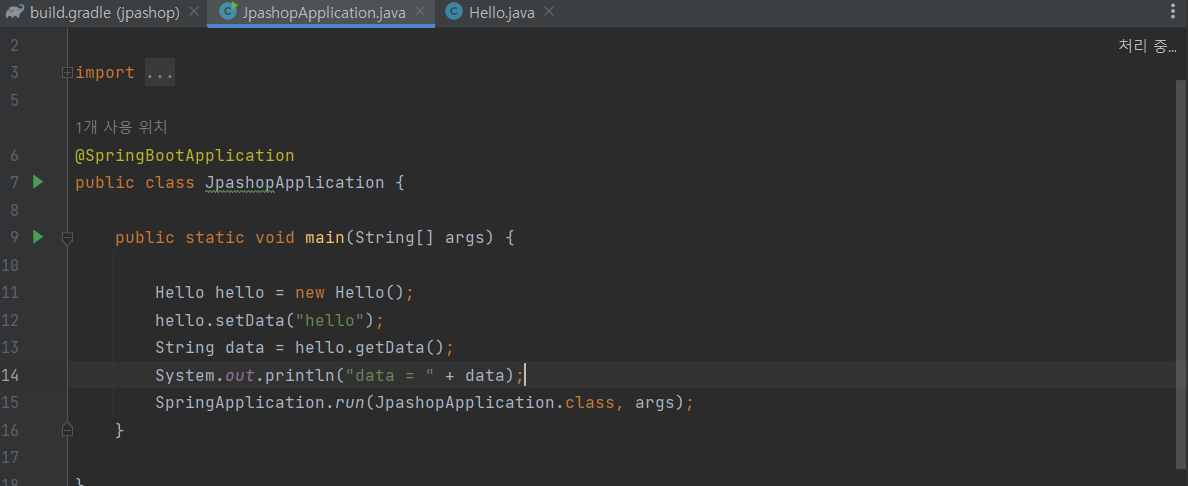 lombok이 잘 돌아가는지 확인하기 위해 Hello클래스를 작성해주었다